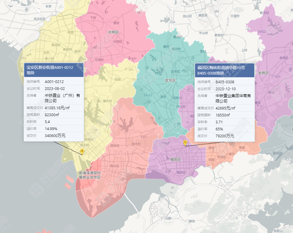 好地网12月10日讯(研究员 宣烨锋)今天,深圳市出让1宗涉宅地,位于福田区梅林街道,吸引了中海、保利、中铁、天健、深圳新世界、华侨城、深圳万骏伟业、越秀共8家企业参拍。
