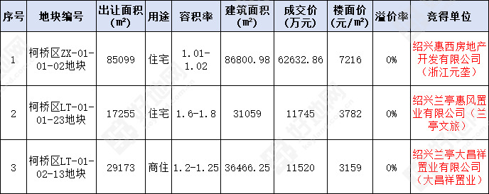 好地网1月16日消息(研究员 孙航海)今天,绍兴迎来2026年首场商品宅地土拍,出让柯桥区3宗涉宅地,由本土企业浙江元垄、大昌祥置业和兰亭文旅底价竞得。