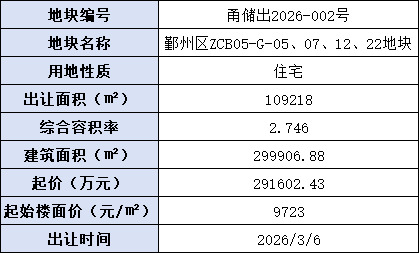 好地网1月27日讯(研究员 周吉羊) 宁波2026年首宗涉宅用地今日挂牌,为鄞州区江东核心的白鹤未来社区地块,预计3月6日出让。