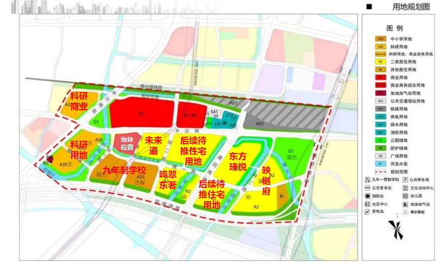 配套宜居优势:地块配套完善,宜居属性突出,交通上,紧邻地铁3号线仇毕站,衔接永达路、南环高架等主干道,5分钟可达宁波东枢纽,通勤便捷;教育上,周边有李惠利小学、宋诏桥中学等优质资源,南侧规划九年一贯制学校,学区预期清晰;商业上,1.5公里内有印象城、宝龙广场等成熟商圈,生活便利;生态上,紧邻游龙支河沿河绿地,依托片区规划打造滨水宜居界面。