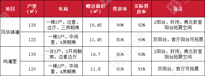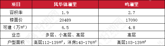 风华锦澜里和鸣澜里指标对比