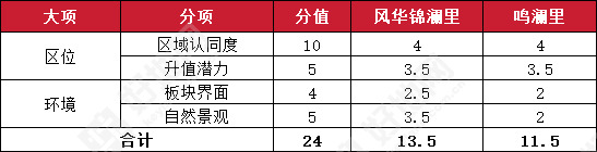 评测结果来看,风华锦澜里得分59.5分比鸣澜里(53分)高12%,同比之下,定价大约高出9-11%。