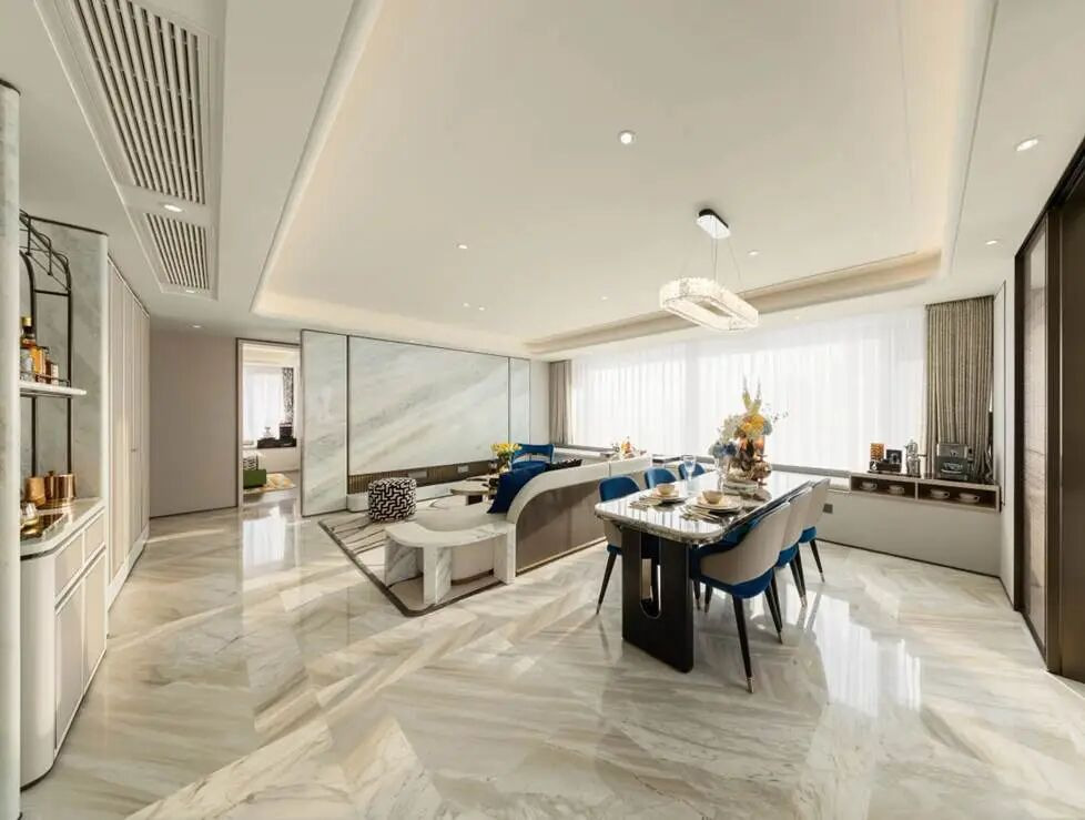 风华锦澜里,厨房电器为方太厨房四件套,卫浴品牌是唯宝、松下,东芝中央空调、菲斯曼地暖;餐客地面天然大理石是亮点之一。