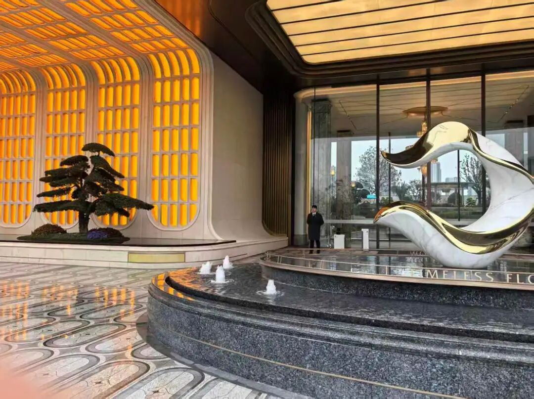 小区大门的“鎏光锦门”宽约68米,采用大面积云母石与镂空琉璃砖,酒店式大门回旋设计。