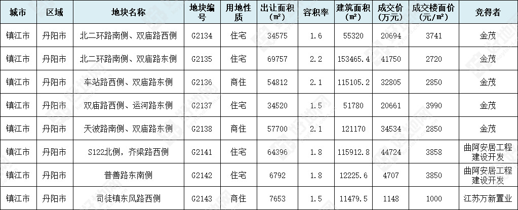 另外3宗分别由曲阿安居工程建设开发、万新置业分食,总成交金额5.1亿。