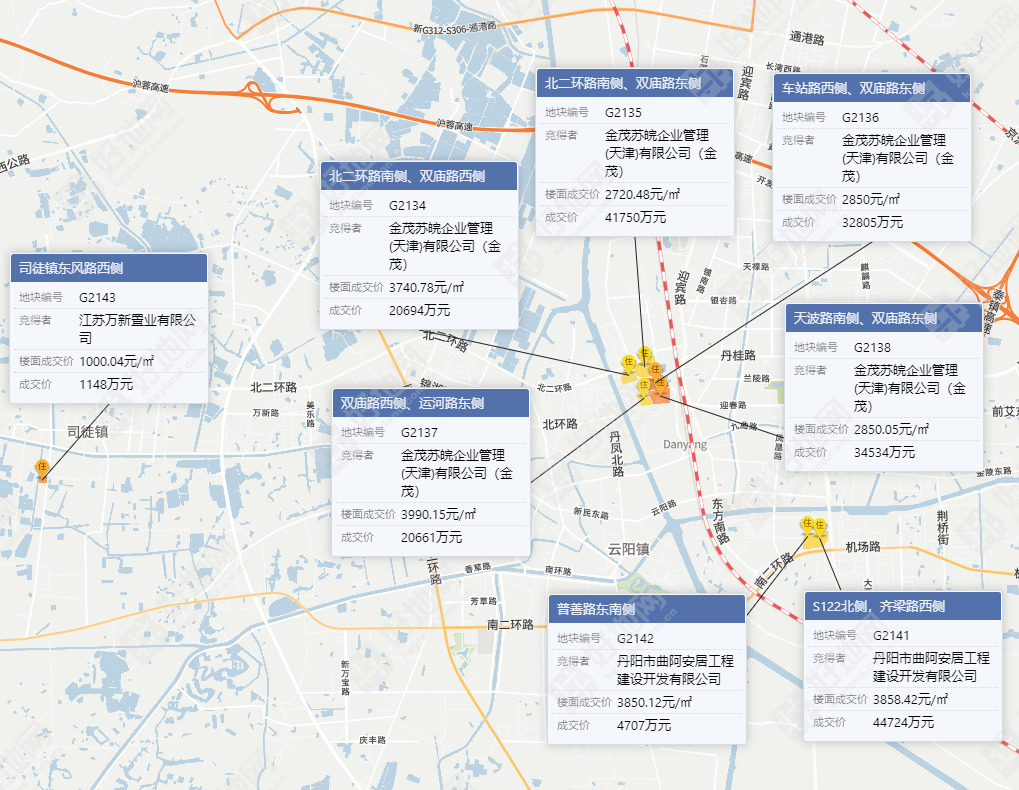 好地网12月6日讯(研究员 周吉羊) 今天,镇江丹阳市出让8宗涉宅地,总出让面积33.02万方,总建筑面积63.65万方,总成交金额20.1亿。