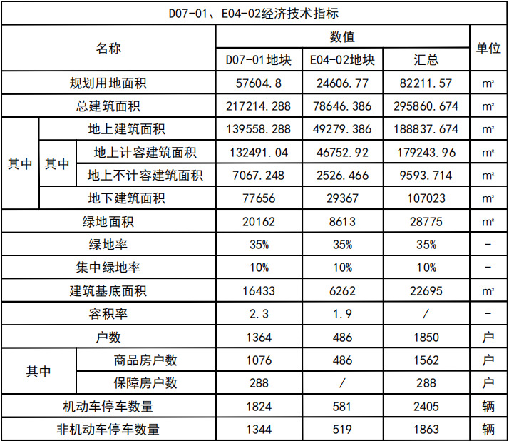 D07-01地块用地面积57604.8㎡,容积率2.3,总建筑面积217214.29㎡,地上计容建筑面积132491.04㎡。