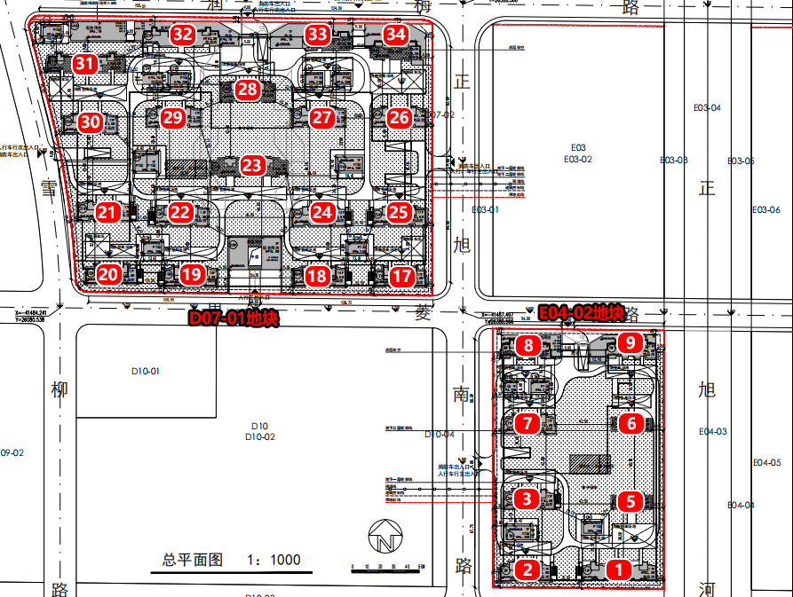 E04-02地块拟建8幢14-17层的高层住宅(8、9#底层带商业、配套)。