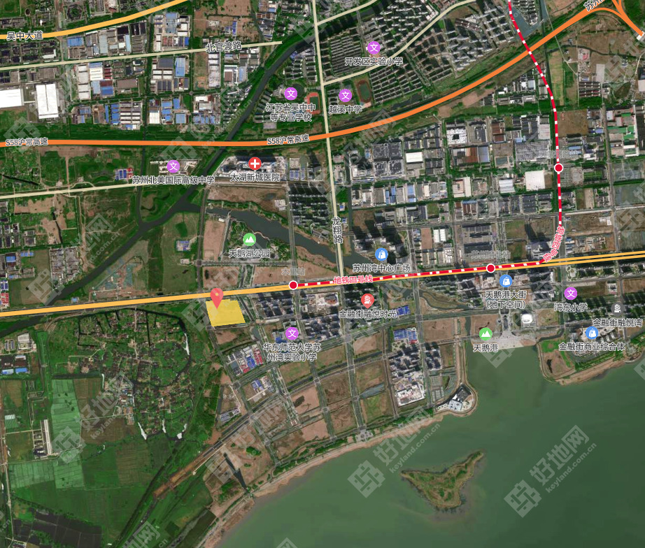 地块位于吴中太湖新城,距离地铁4号线木里站不到200米,交通便捷,南侧1.5公里范围内是太湖,环境优越。