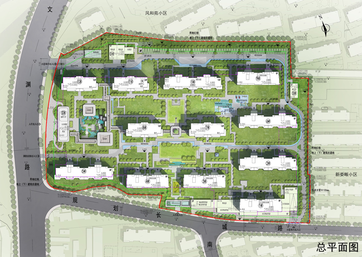 项目用地面积42966㎡,地上计容建筑面积51559.2㎡,地下建筑面积27500㎡。容积率1.2,建筑密度30%,绿地率30%,建筑高度≤35米(住宅建筑高度不低于18米)。
