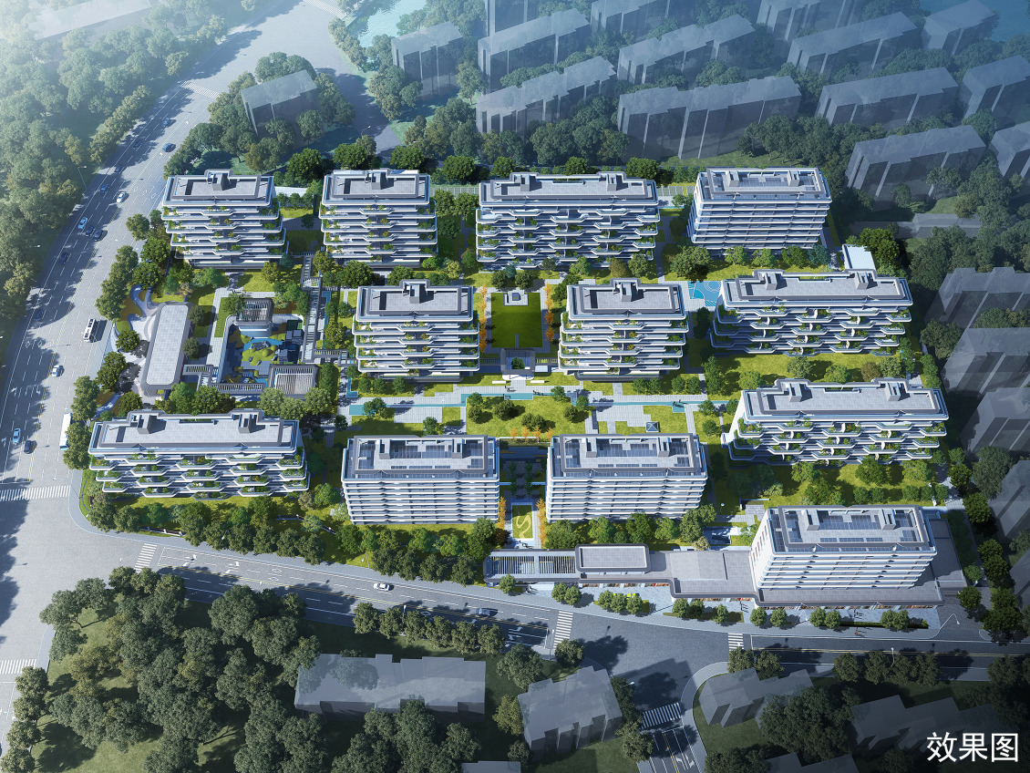 根据效果图可见,项目内打造下沉式庭院及室外体育设施,项目整体楼间距较大,设西南两个出入口,南侧设有沿街底商。同时,2#、5#、6#、7#、8#、10#、11#、12#八幢楼设置大露台、垂直空中花园等细节构造,预计打造景观生态住宅,即第四代住宅。