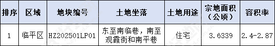 清单中仅1宗地块,编号为HZ202501LP01,即原汽车南站地块,东至南临巷,南至观霞街和南平巷。