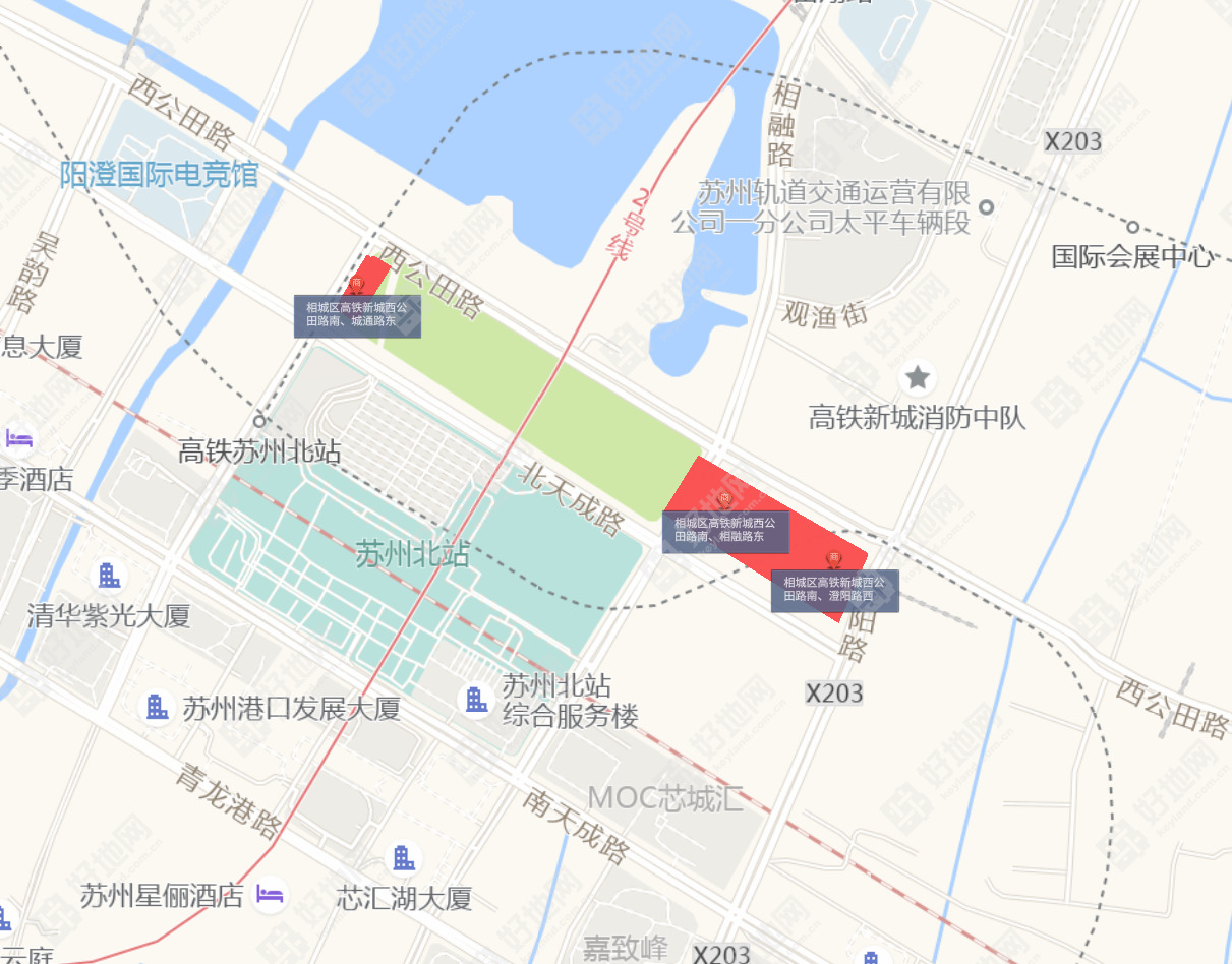 好地网5月13日讯(研究员 周吉羊) 近日,相城高铁新城挂牌3宗商地,总面积58.8亩,总起价2.5亿元,将于6月11日出让。