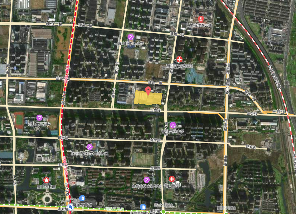 地块紧邻萧山新城区,南靠北塘河,赋予地块水韵之美、提升人居价值。周边市中心小学、万象汇、萧山医院等城市配套完善。
