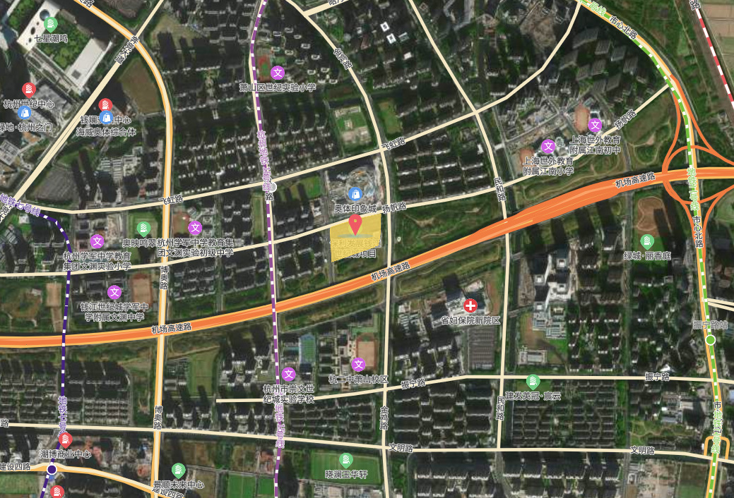 地块位于世纪城南区块,距离规划15号线合丰站不到300米。周边有萧山区世纪实验小学、文渊中学、崇文实验小学等优质教育资源,北侧奥体印象城将提供生活所需的商业配套。