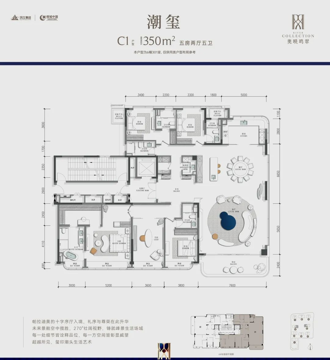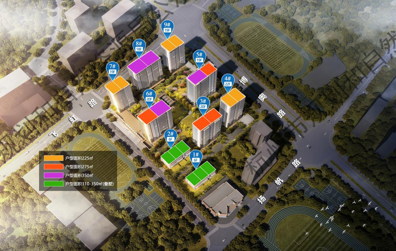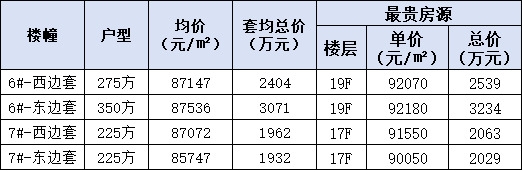 开盘户型包含:B1户型275㎡(19套,6#西边套);C1户型350㎡(19套,6#东边套);以及A户型225㎡(36套,7#楼)。