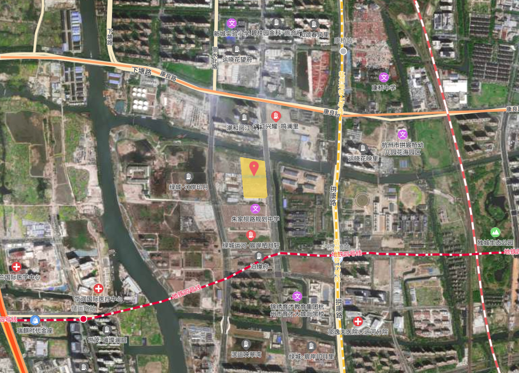 地块距离地铁4号线、规划15号线换乘站平安桥站仅500米。周边有富康时代广场、迪凯运河印象、朱家坝路规划中学、杭州育才大城北学校、邵逸夫医院大运河分院等生活配套。