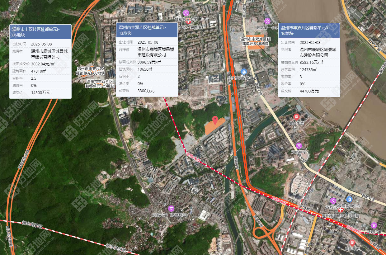 地块北侧2公里范围内,今年5月8日出让了3宗商住地,由鹿城区城景城市建设有限公司包揽。